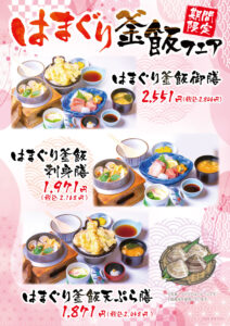 今年もご好評いただいている 「はまぐり釜飯フェア」 を、4月1日より開催いたします。
