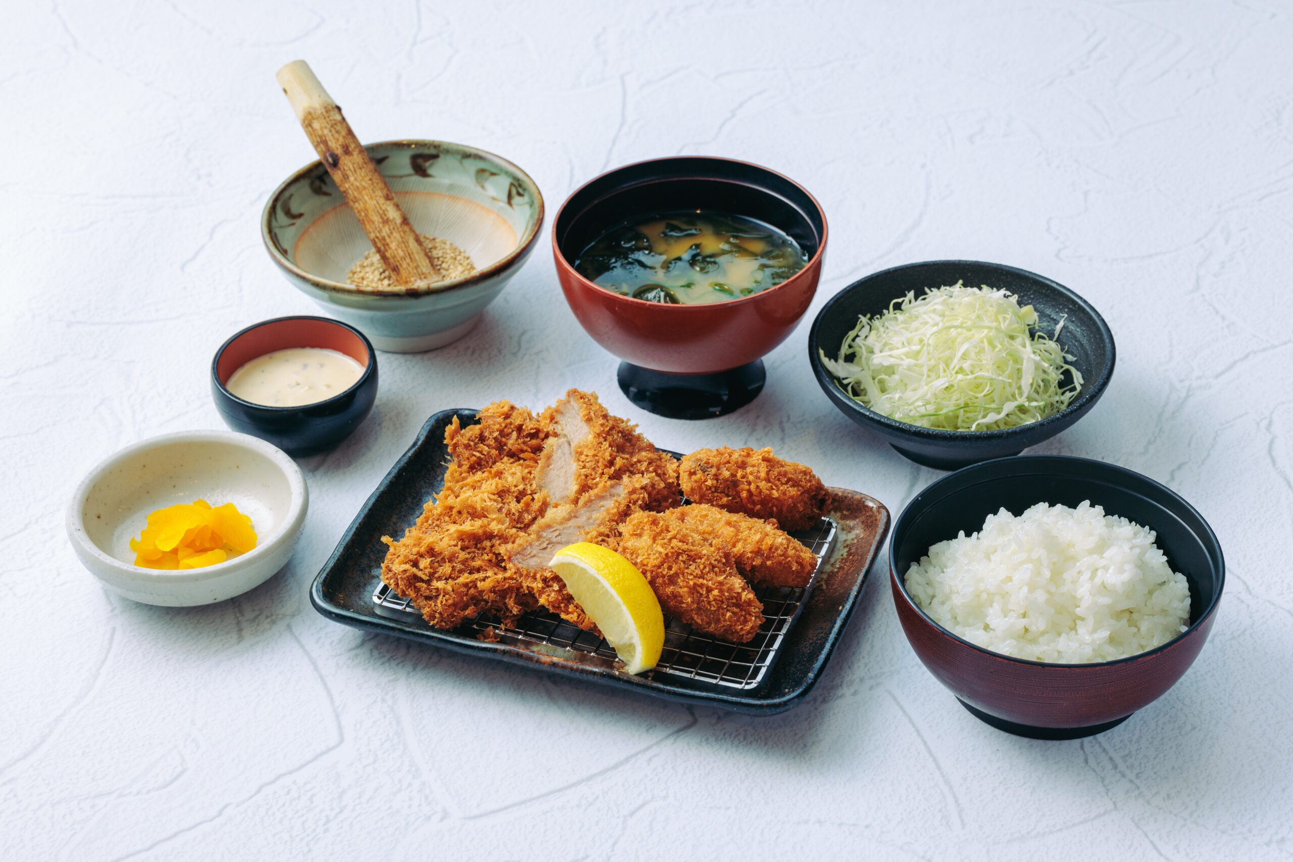 ジューシーなロースかつと牡蠣フライが一度に楽しめる贅沢な一品。