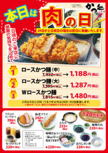毎月29日は『肉の日』! 【かつ処季の屋マルナカ高知インター】