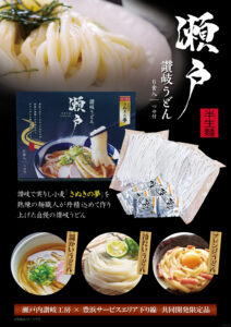 瀬戸内讃岐工房とともに丁寧に仕上げた共同開発コラボ商品で、ここでしか手に入らない特別な土産うどんとなっております。