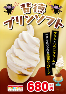 濃厚プリンのなめらかさと、ミルク感たっぷりのソフトクリームが一度に楽しめる贅沢スイーツです。